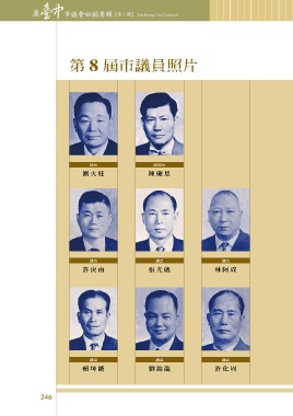 原 市議會回顧專輯 【第1輯】 ୋ̬ 原臺中市議會 第 8 屆市議員照片 ͏˴݁طක௴ࣛಂ ᙄࡰ ᙄࡰ ᙄࡰ ᙄڗ ਓᙄڗ 劉火旺 陳慶星 曾文坡 莊乃慧 賴清海 ᙄࡰ ᙄࡰ ᙄࡰ ᙄࡰ ᙄࡰ ᙄࡰ 許庚南 張光儀 林阿成 賴一清 游朝陽 賴湘濱 ᙄࡰ ᙄࡰ ᙄࡰ ᙄࡰ ᙄࡰ ᙄࡰ 賴坤鎕 劉錦龍 許化周 賴榮園 賴天龍 劉牧雲 246 247