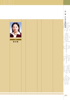 原 市議會回顧專輯 【第2輯】 ୋɚ 原臺中市議會 第 16 屆臺中市議員照片 ϵڀᄁ׳ක௴ࣛಂ ᙄࡰ ᙄࡰ ᙄࡰ ᙄࡰ 曾朝榮 陳成添 賴順仁 羅春蘭 ᙄࡰ ᙄࡰ ᙄࡰ 陳清景 蔡雅玲 游民哲 ᙄࡰ ᙄࡰ ᙄࡰ 林永能 沈佑蓮 王岳彬 236 237