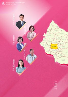 第1屆 臺中市議會 議員問政回顧紀念專刊 TAICHUNG CITY COUNCIL 張 廖 萬 堅 議 員 陳 大甲區 淑 大安區 華 外埔區 議 后里區 員 黃 清水區 石岡區 和平區 馨 神岡區 慧 豐原區 東勢區 梧棲區 議 沙鹿區 大雅區 員 潭子區 龍井區 西屯區 北屯區 5 新社區 楊 大肚區 南屯區 4 1 2 正 3 太平區 中 烏日區 大里區 議 員 張 霧峰區 廖 乃 綸 議 員 1 中區 2 東區 3 南區 4 西區 5 北區