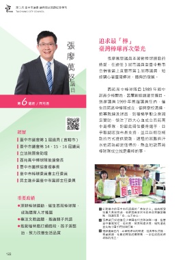 治,致力改善生活品質 3 張廖議員任內,本著對棒球的熱愛,從與學校溝通、