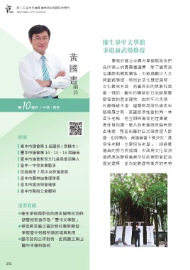 ▍臺中市議會第 1 屆議員 ( 直轄市 ) 保住老樹,也要保住老屋」。經過黃