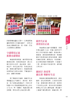 環境整治也不遺餘力,潮洋溪、惠來 養育、強化托育政策;主張育兒政策