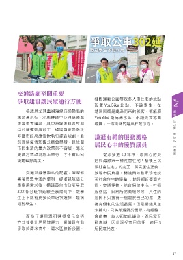 方式並提升居民健康力,楊議員主動 動真誠,因此深受市民信任,連任 3