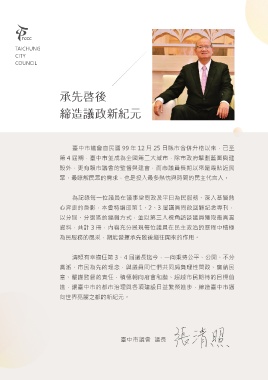 心奔走的身影,本會特編印第 1、2、3 屆議員問政回顧紀念專刊,